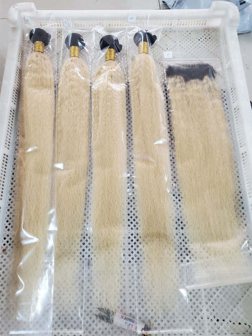 #1B/613 Blonde Coily Straight Sew In Hair Weft with Lace FRONTALS