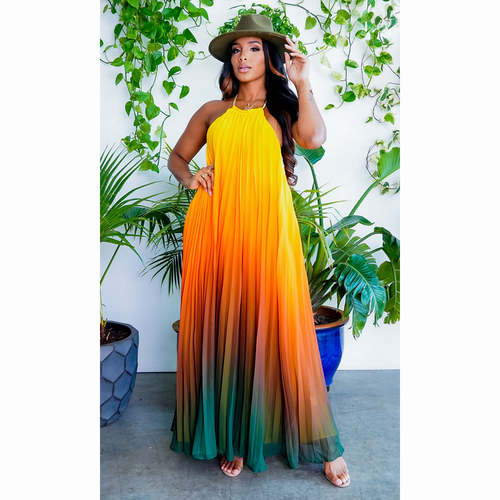 Casual Flame Colored Holster Sun Women's Chiffon Maxi Dress